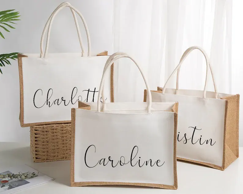 2024 eco laminated jute canvas bag burlap reusable linen beach bag hessian canvas shopping tote bags with custom logo