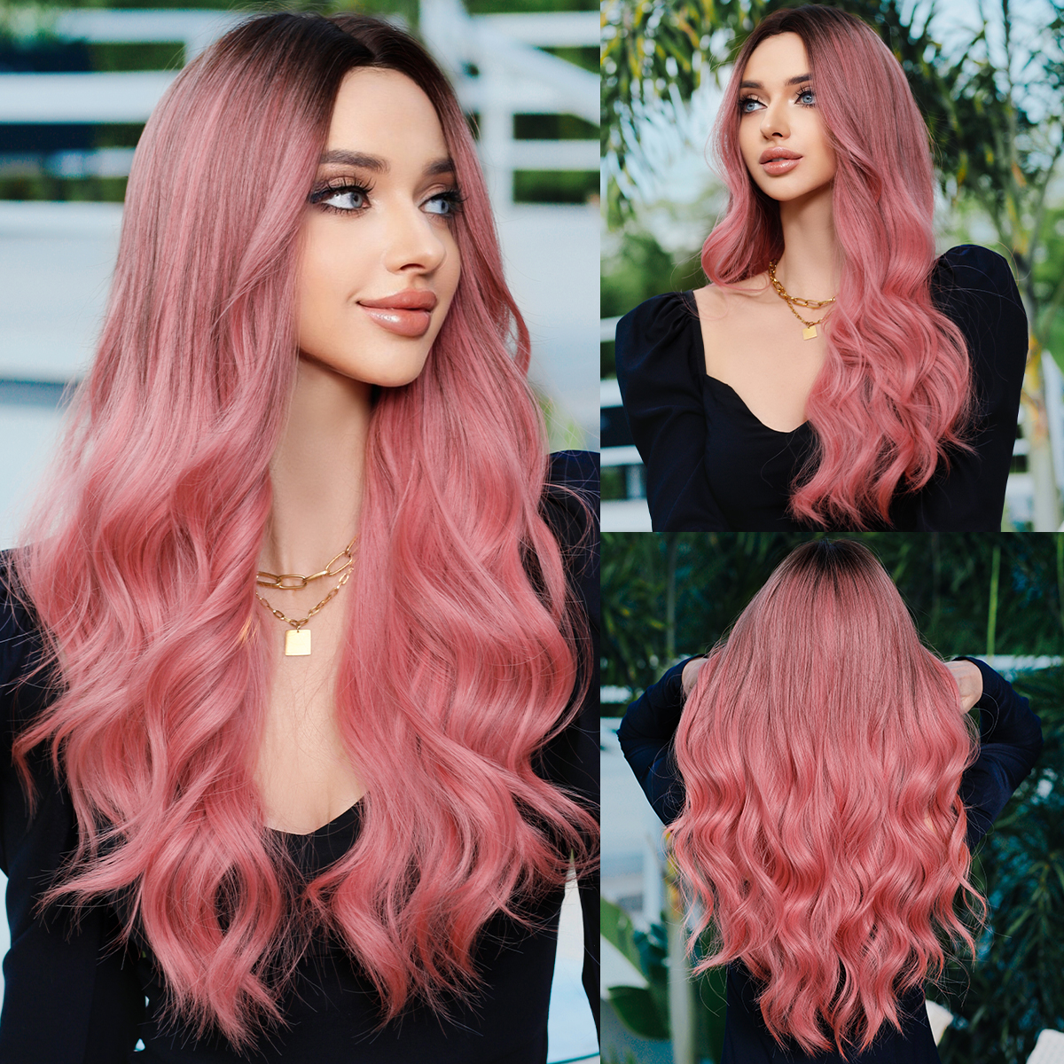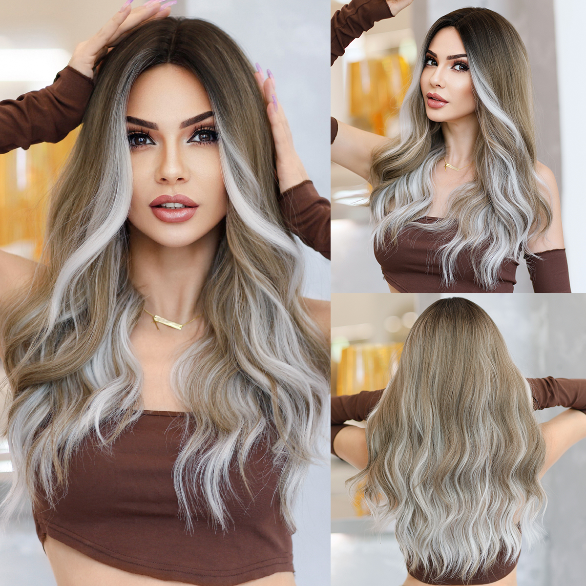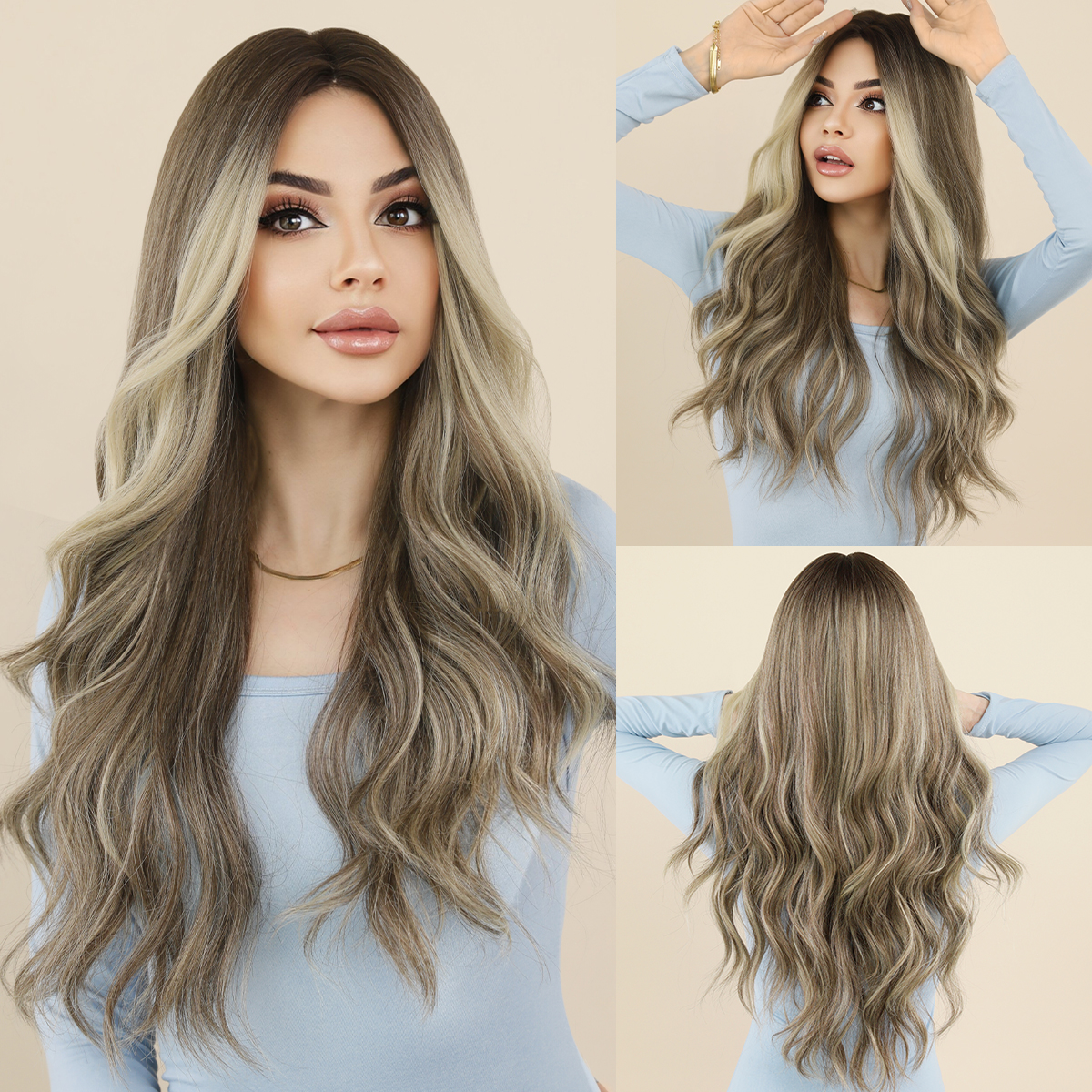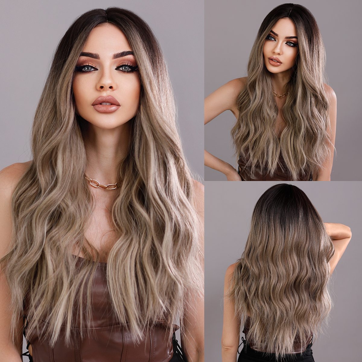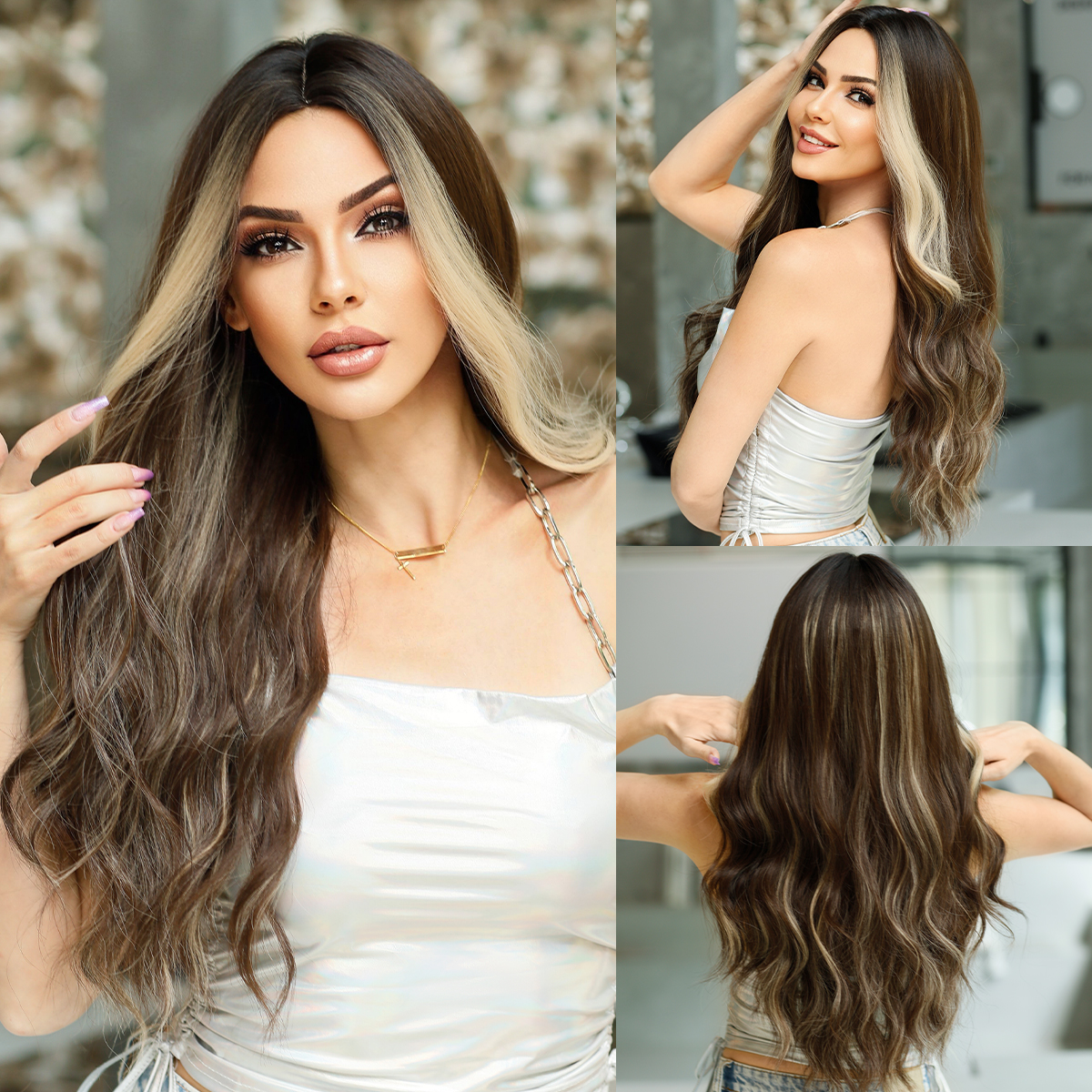 Long Wavy Wig Ombre Blonde Wigs for Women Synthetic Curly Hair Wig Middle Part Heat Resistant Daily Cosplay Use 30 Inch