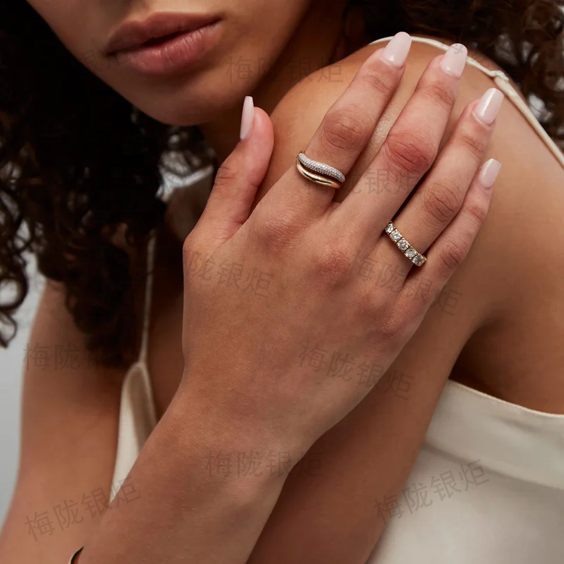 LOZRUNVE Fashion Jewelry Wholesale Sterling Silver 925 Chunky Wave Dome Ring Set for Women