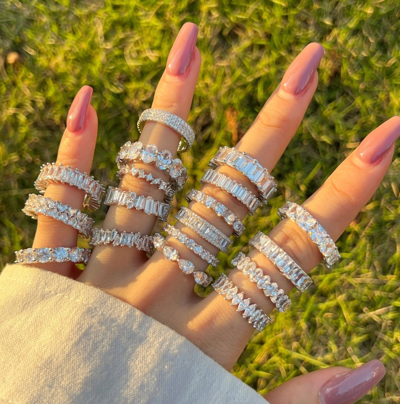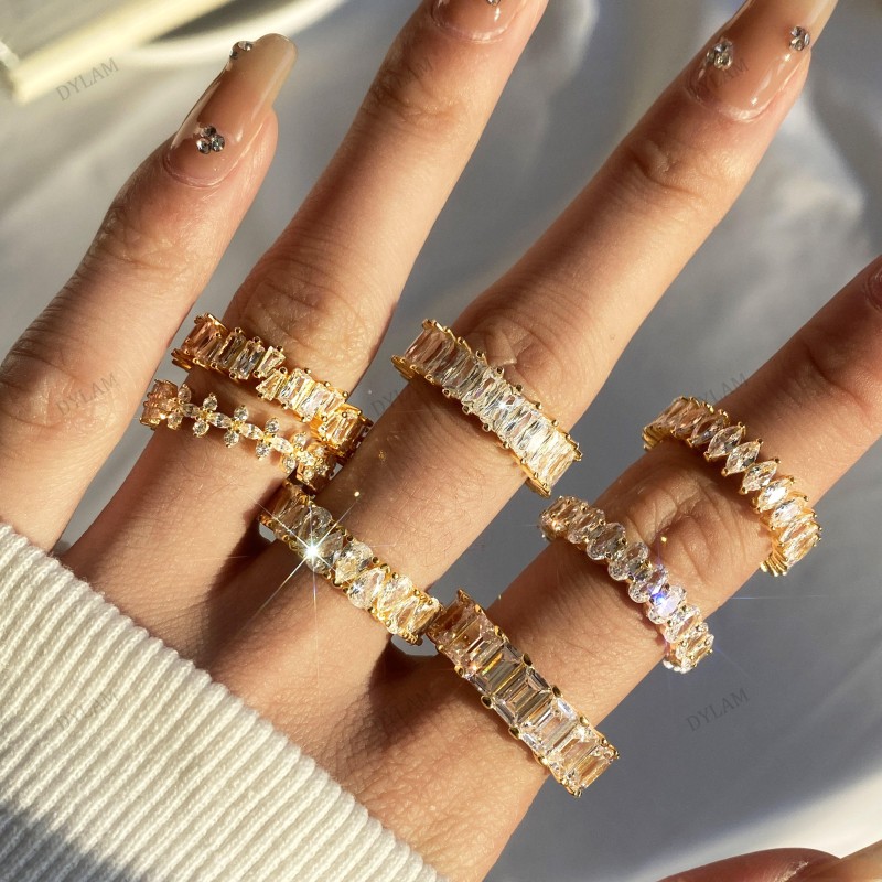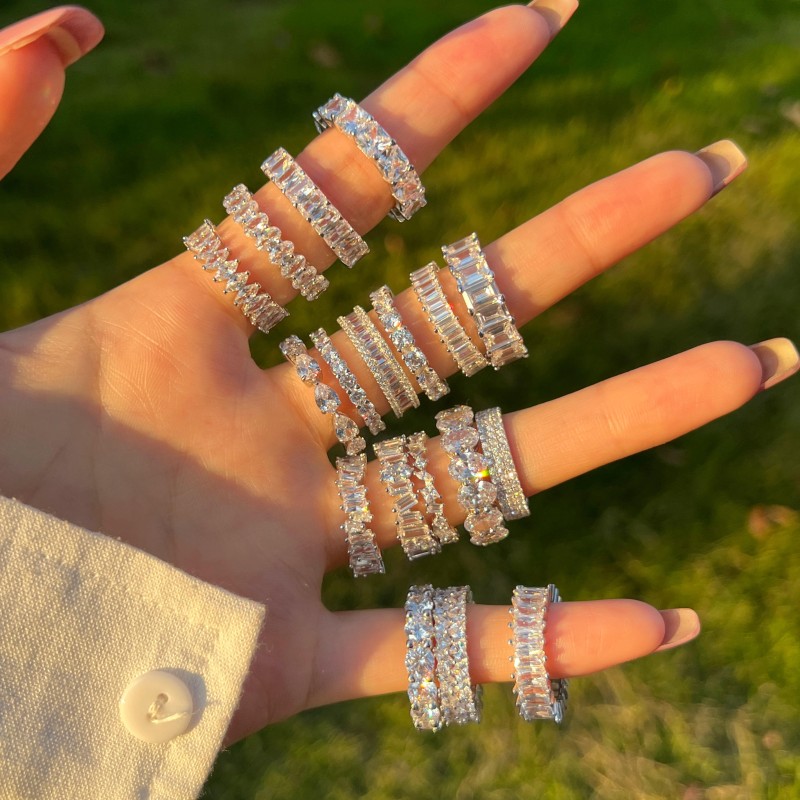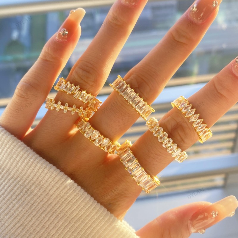 925 Sterling Silver Zircon Jewellery Eternity Band Diamond Engagement Wedding Ring Stackable 18K Gold Plated Rings Jewelry Women
