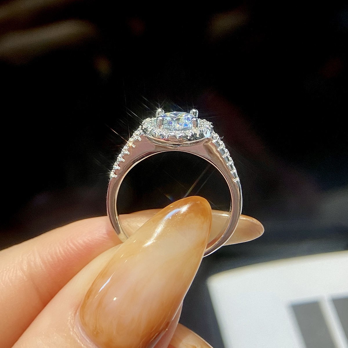 fashion Gra diamond moissanite 2 row halo ring 925 sterling silver 18K white gold 1 2 ct carat vvs for women engagement Jewelry