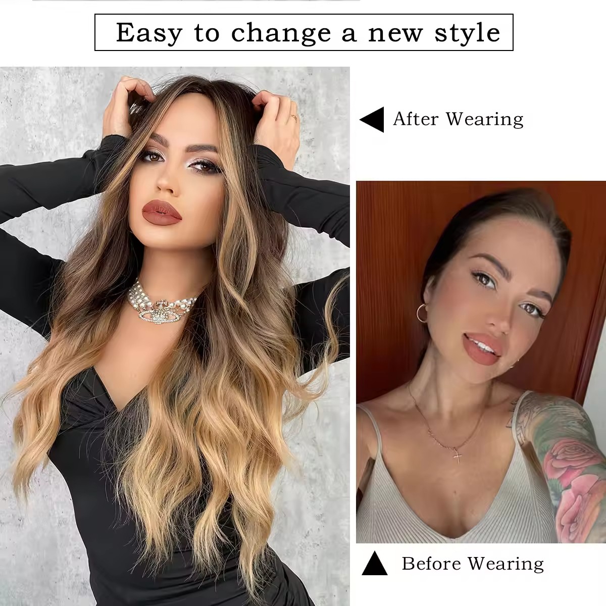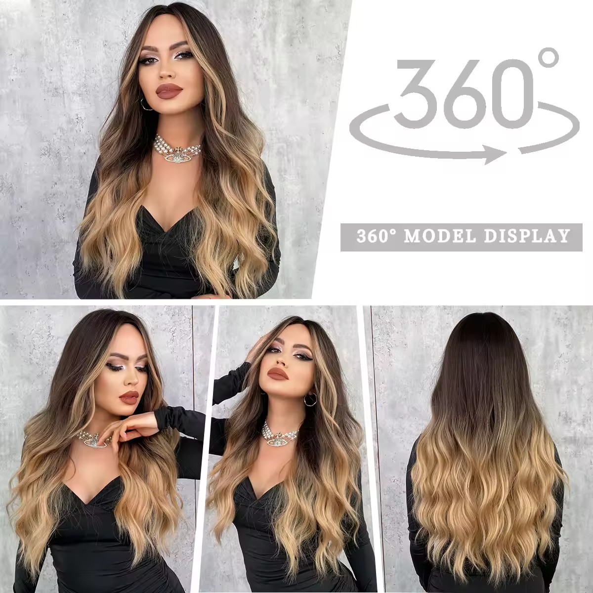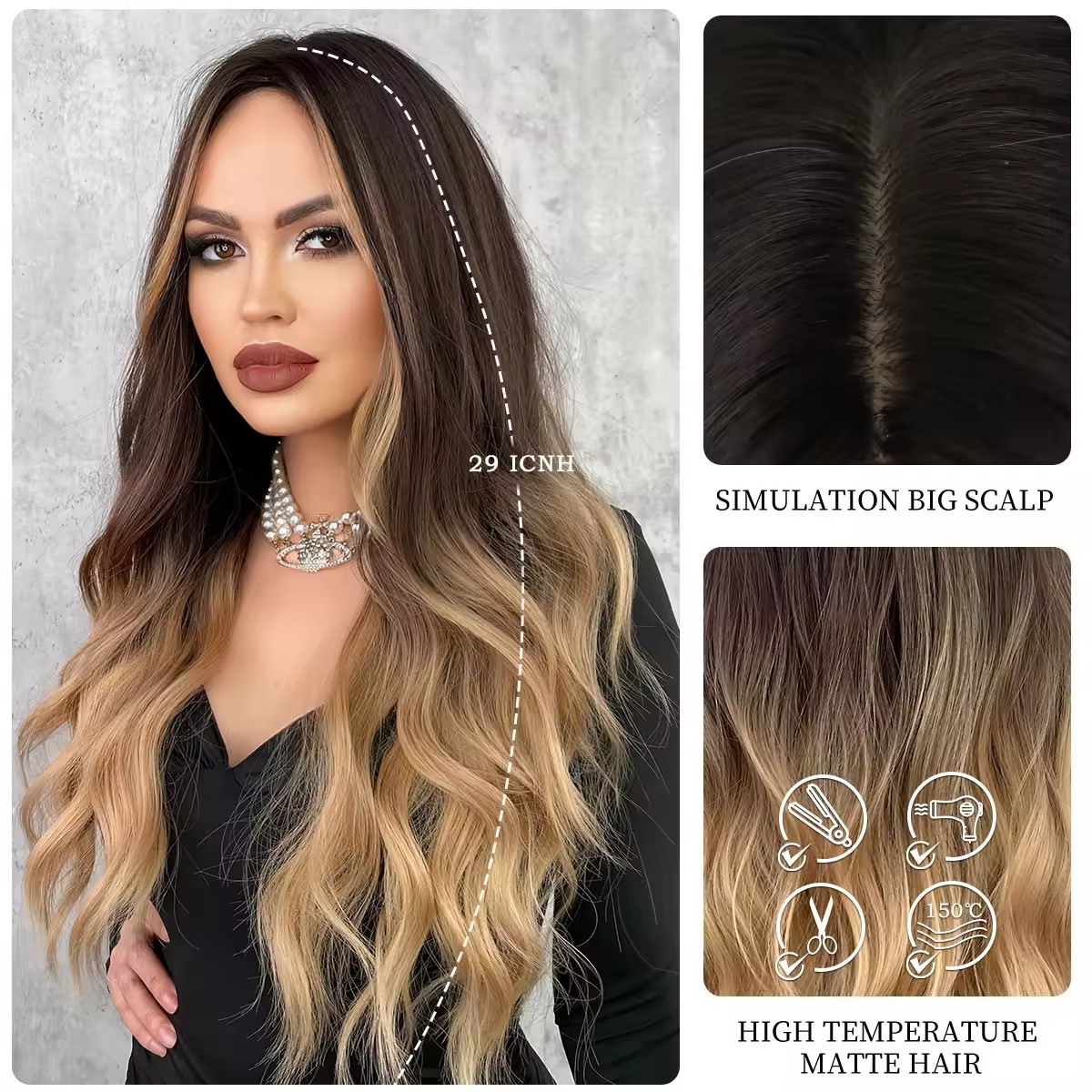 Long Wavy Wig Ombre Blonde Wigs for Women Synthetic Curly Hair Wig Middle Part Heat Resistant Daily Cosplay Use 30 Inch